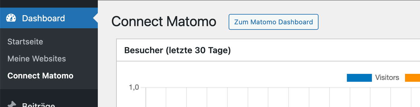 Im WordPress-Backend haben Sie die Möglichkeit, ein Nutzerkonto in der Matomo-Instanz zu erzeugen, das Ihnen ohne weiteren Login-Prozess Zugriff auf die Matomo-Funktionalitäten gewährt.