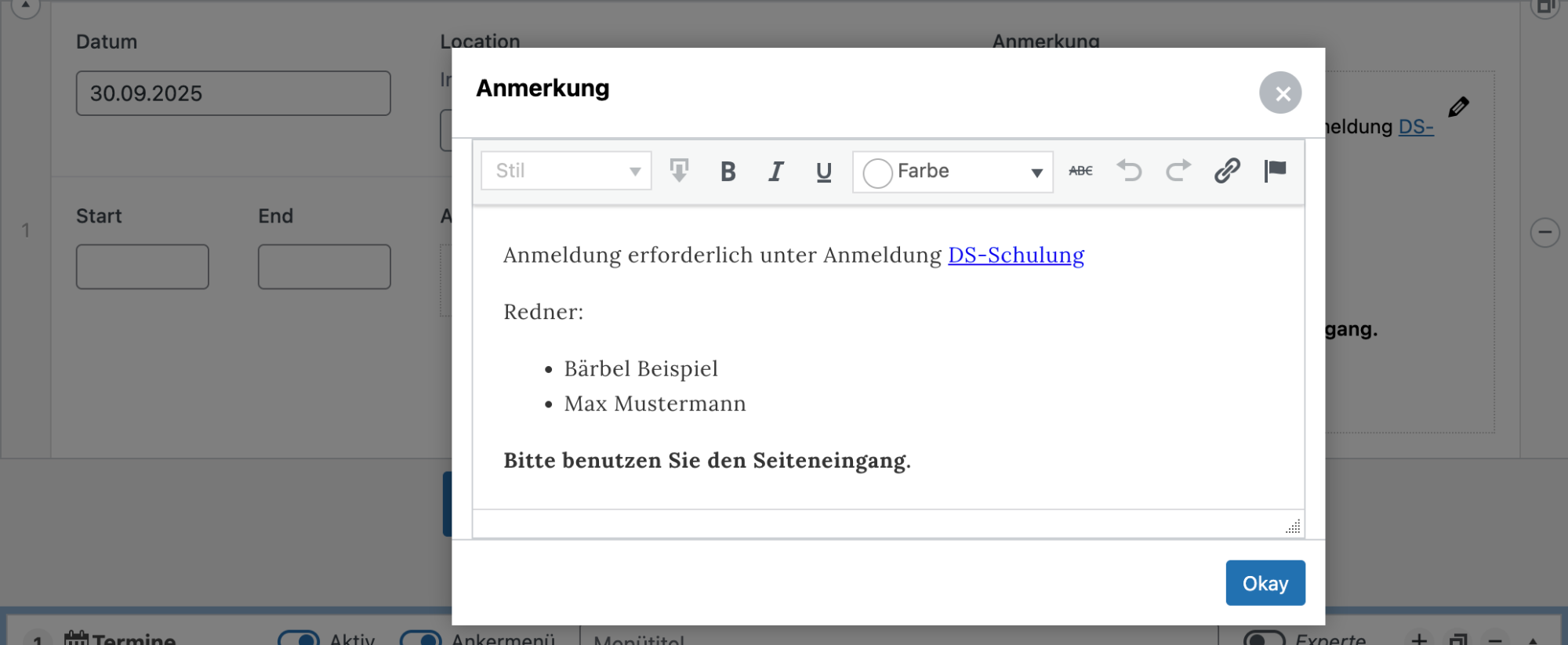 Die Anmerkungen beziehen sich auf den konkreten Termin und sollen auf dessen Besonderheiten hinweisen.