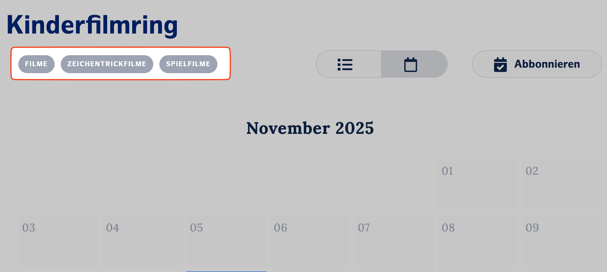 Auf allen anderen Seiten stehen Optionen zur Steuerung der angezeigten Veranstaltungen zur Auswahl.