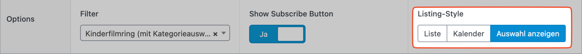 Sie können wählen, ob die Anzeige als Liste oder als Kalender erfolgen soll oder sie dem Benutzer die Auswahl gestatten möchten.